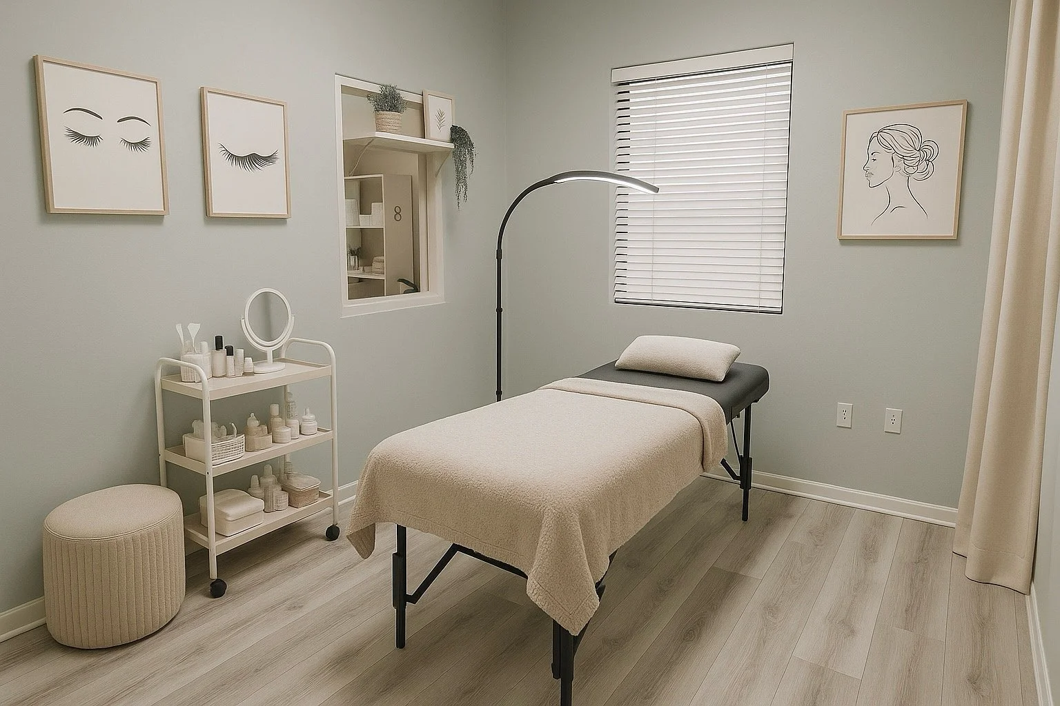 Ideal for one professional (lash artist, esthetician, brow specialist, massage therapist, etc.)